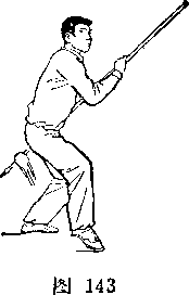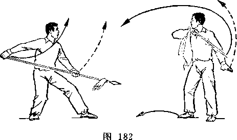 身向右前方平抡,用枪杆横击甲头部;目视甲头部(图259)。
