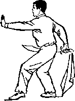 (1)右腿屈膝提起,脚面绷直;两拳拳心向上抱于腰间(图