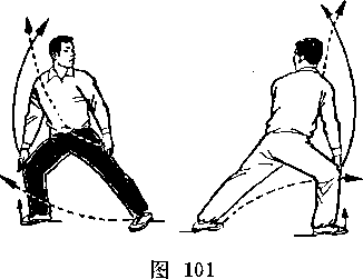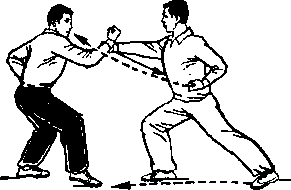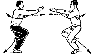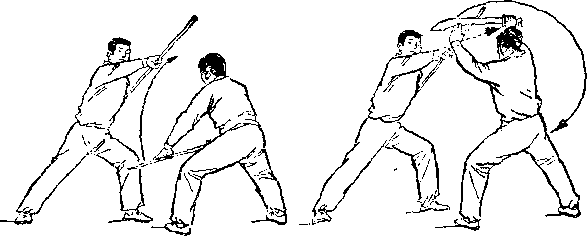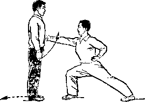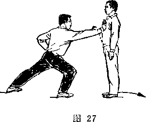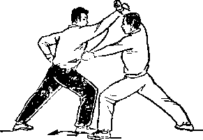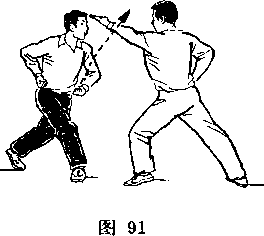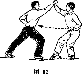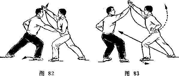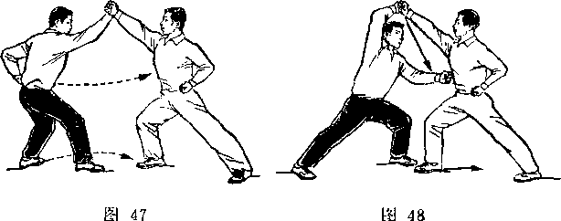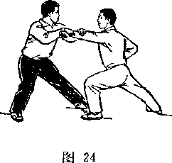 距离适当:是指双方一进一退的步幅调节要适当。双方距离 太近,肢体伸展不开,动作会受影响;距离太远又显得松散,攻 防方法不真实。