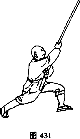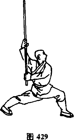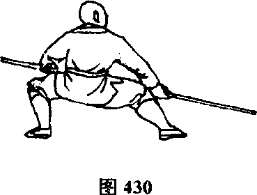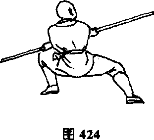 抽身拖戟是进势, 进罗捉拿均四平, 欲知单人进礼入, 飞天叉势(图428)