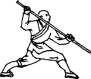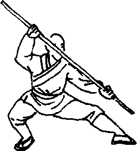 雁翅先勾圈外枪,锁口扎来蹦打易, 其棍横在左腰胯间。