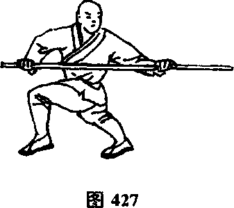 先立群拉左右拿, 他棍不论假和真, 左拉右拉步紧头, 披身势(图426)