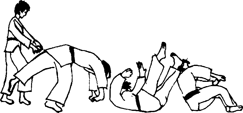 ①在做行进间向前滚动倒地等练习的基础上,进行练习。
