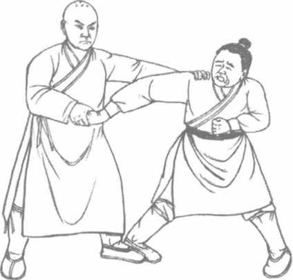 如敌人背我而立我欲拿其一肩者即将一手大、中、食三指作鹰爪状突然发出以中、食二指插入敌人之肩井而大拇指则从肩胛骨狭端下面之骨缝中抠入运力拿之。如欲拿敌人之左肩则发左手依法拿之。如欲左右并拿则两手齐发也。