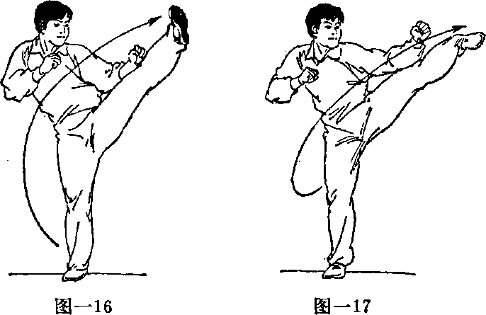 (图一17)。要求上步、转身、摆腿用力连贯摆腿时身体可稍前倾。