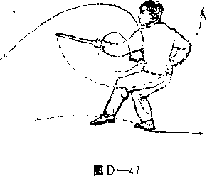 ,抽至右腰间手心向内棒头向前,目视前方(图—47)。