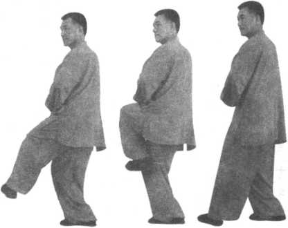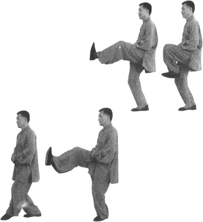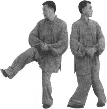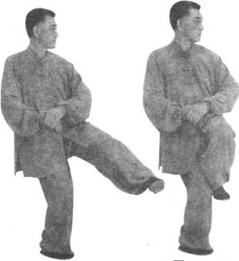 全身重心移于左腿,右腿提起,