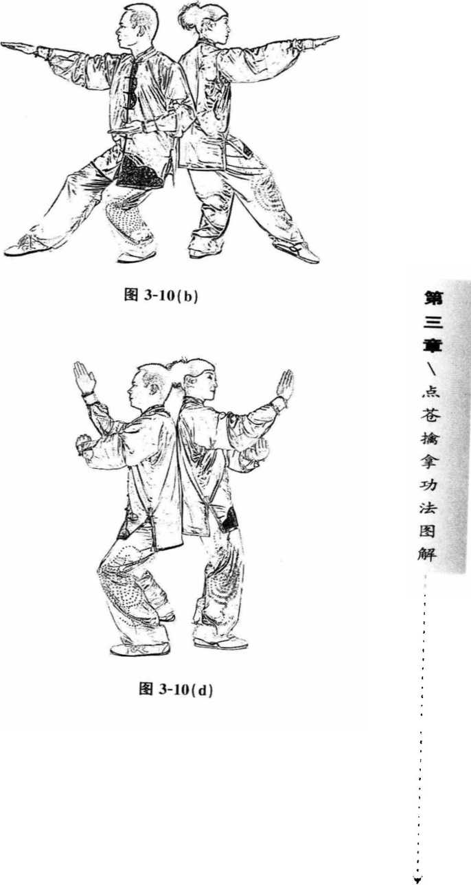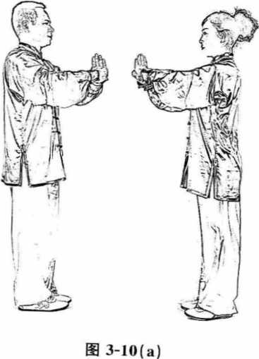 与阴阳换掌(见图3-10())功法动作各四遍后(注以下技法均按