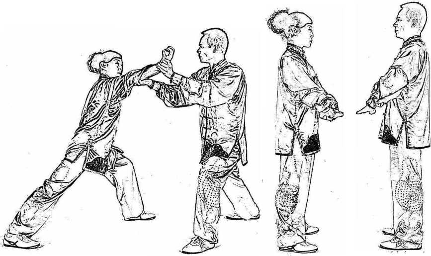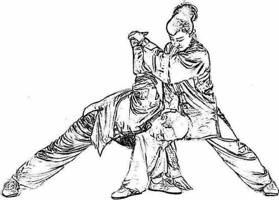 为强、先发先制、出手不见手、以刚制柔又要随机变劲做到声 东击西、指上打下、以巧制强的技术要求。这里有代表性体现的动