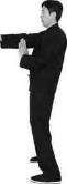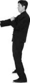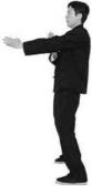 1 问手式先由二字指阳马式摆好左手在前、右手在后的问手式或直接摆好问手式(图4-142)。