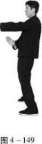 5 图4一147图4一147图4一145图4一145第四章拳法第四章拳法问手式动作不停随即左手变掌形成前锋手右手稍收上抬成问手式(图4-150、图4-151)。