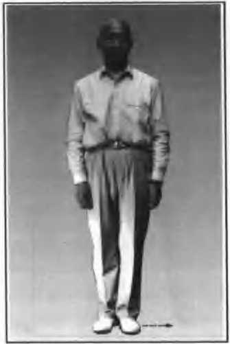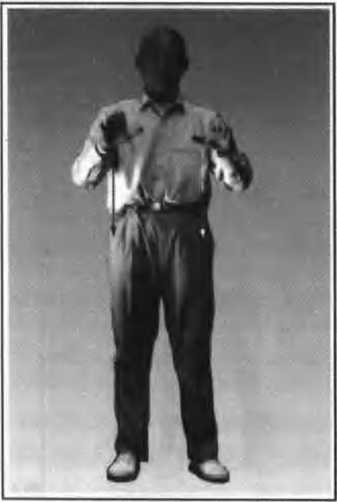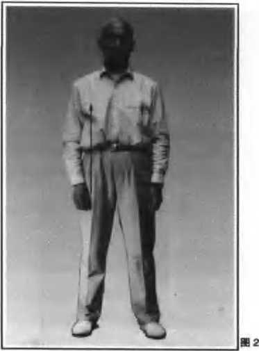 身体自然直立,两手轻贴大腿外倒,两脚相 并朝前c按照本拳式基本要求,从头到脚.用心 检查和纠正各个部位;眼平视前方(图